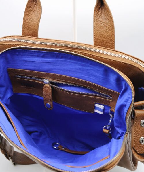 - Bag structure – 2 main zipped compartments + 1 large open slash compartment.