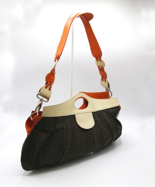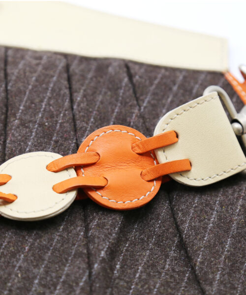 - Material – Wool fabric, cow cow leather details